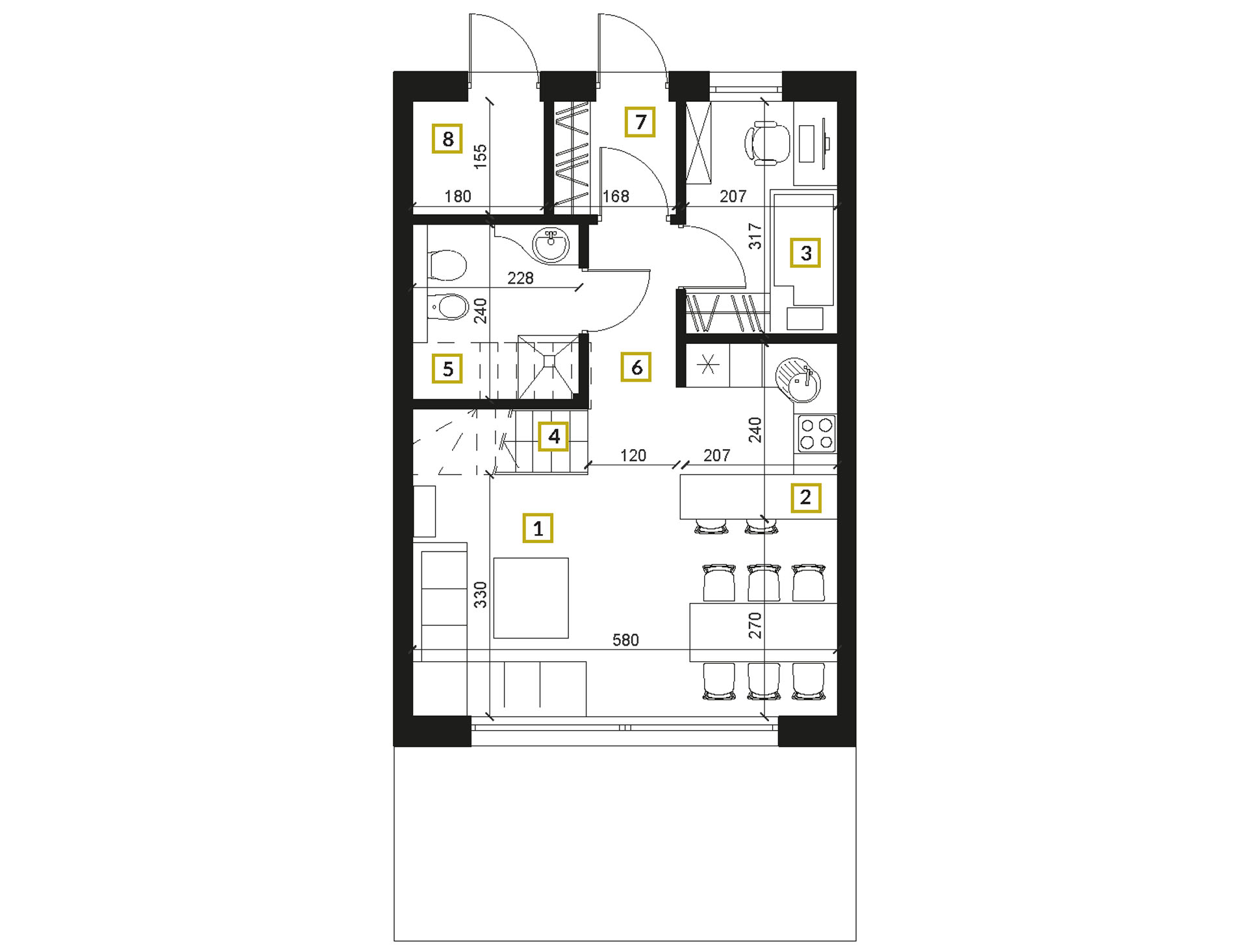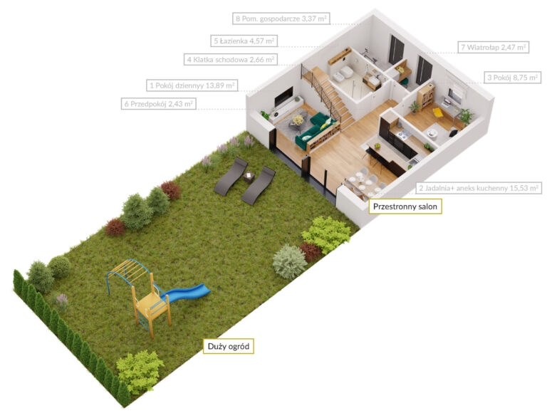 | 2 | Jadalnia+ aneks kuchenny | 15.53 m2 |