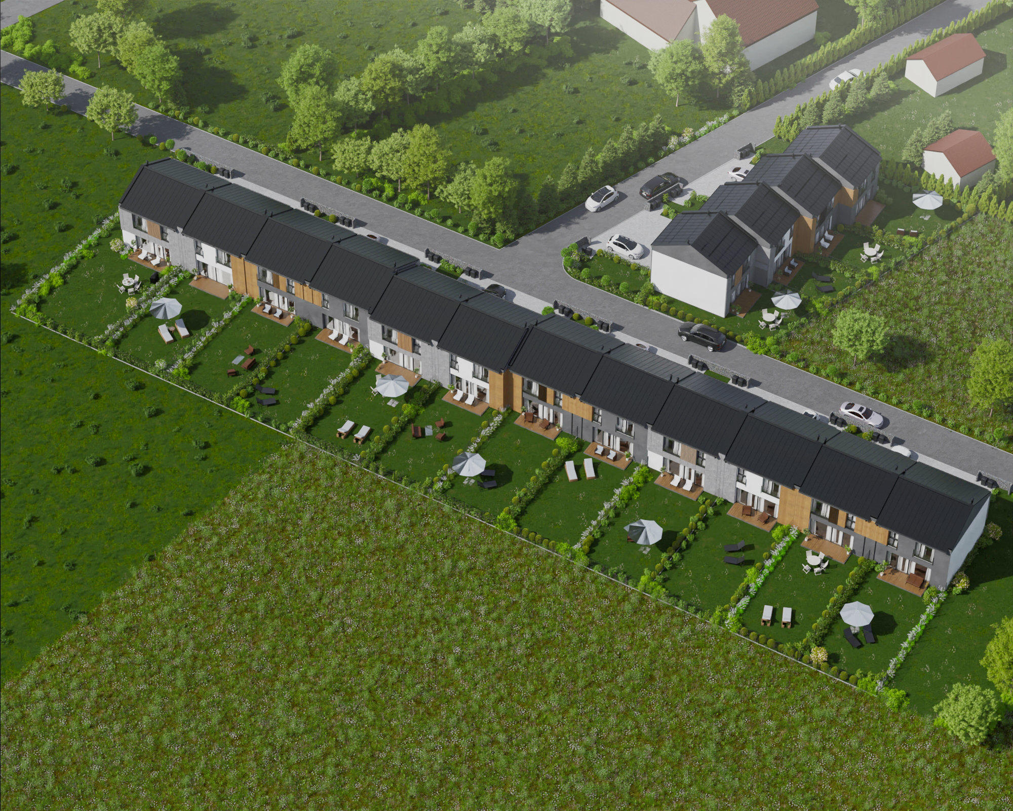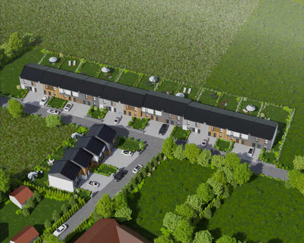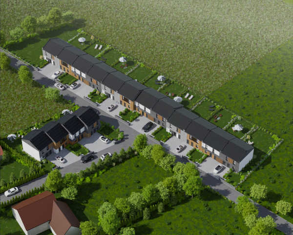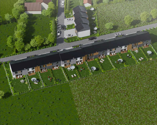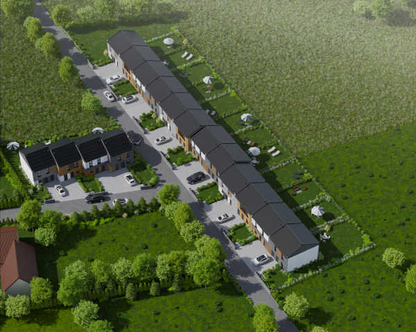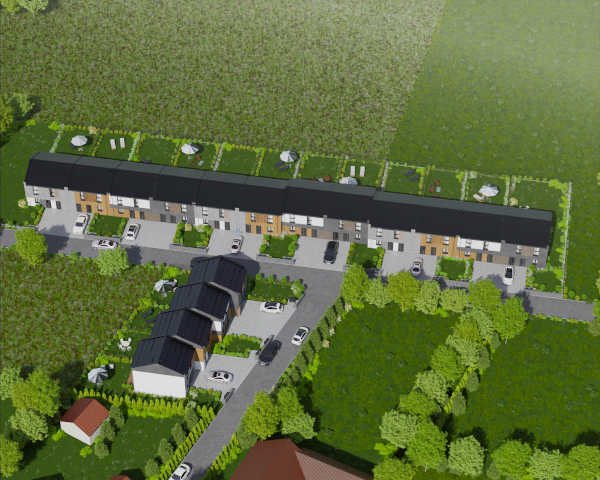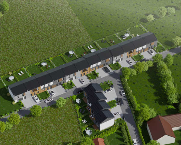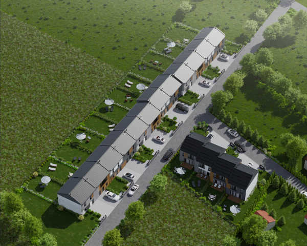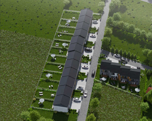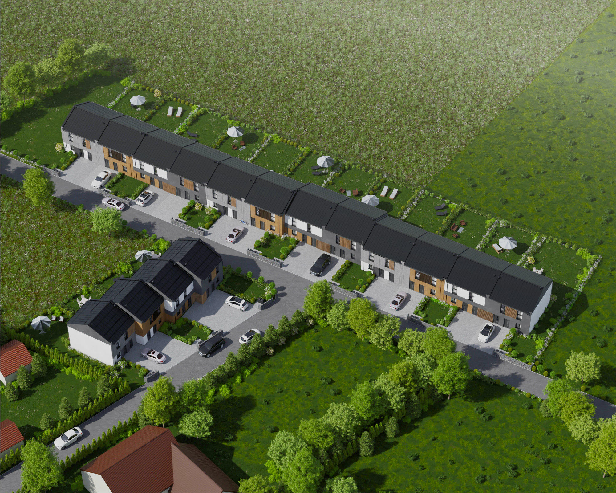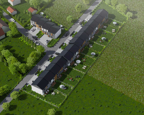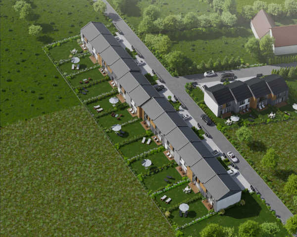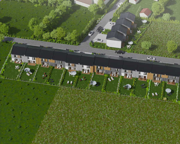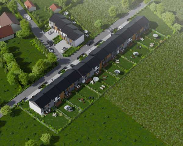 Ponadto do każdego domu przynależy prywatny, słoneczny ogródek – idealny do relaksu na świeżym powietrzu. Samochody można parkować pod wiatą garażową i na dodatkowym miejscu postojowym. Budynki zostały wykonane ze sprawdzonych materiałów w wysokim standardzie oraz przy wykorzystaniu energooszczędnych technologii. Cechuje je nowoczesna architektura, wykorzystująca w wyjątkowy sposób prostą, ponadczasową formę w eleganckiej kolorystyce.
