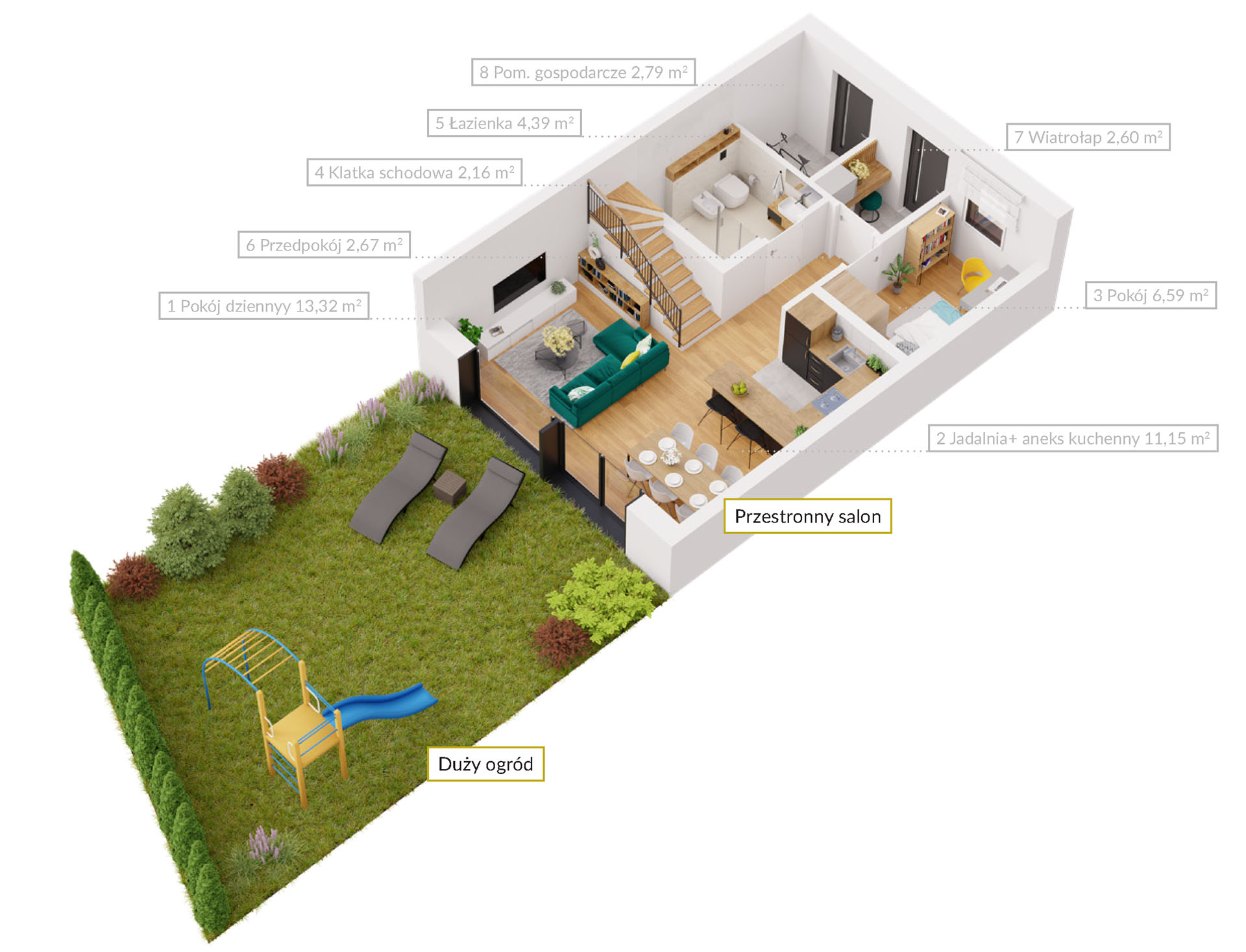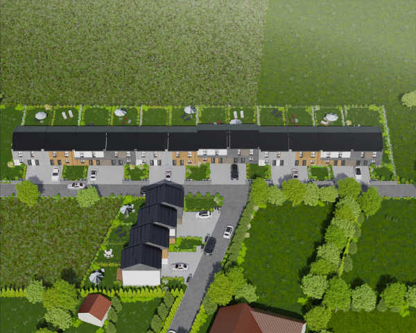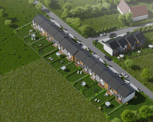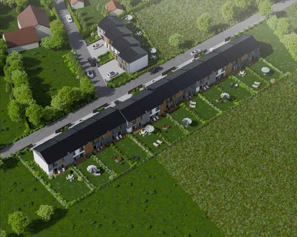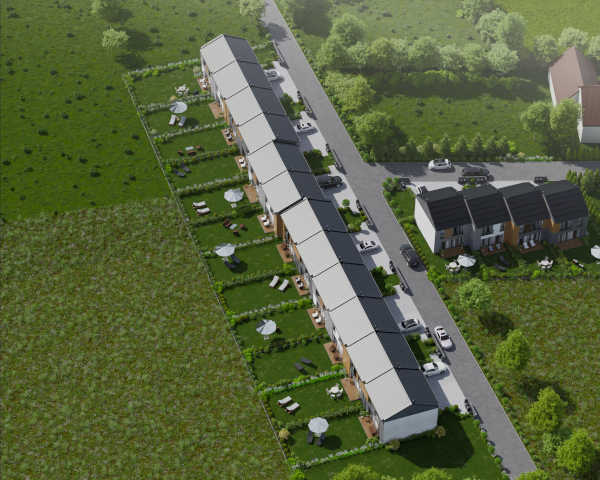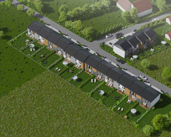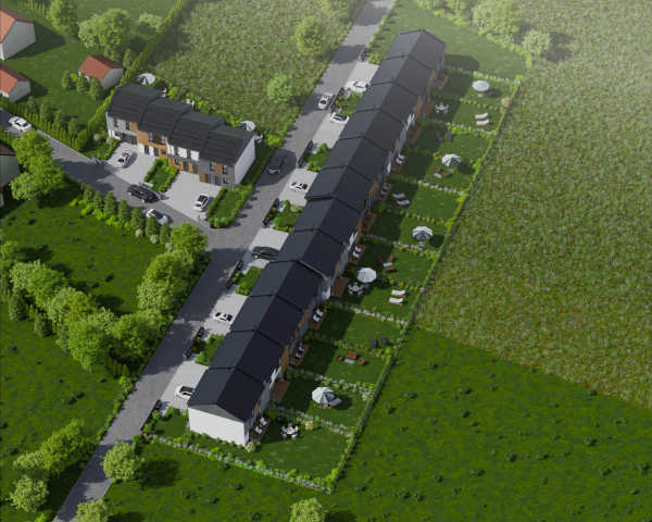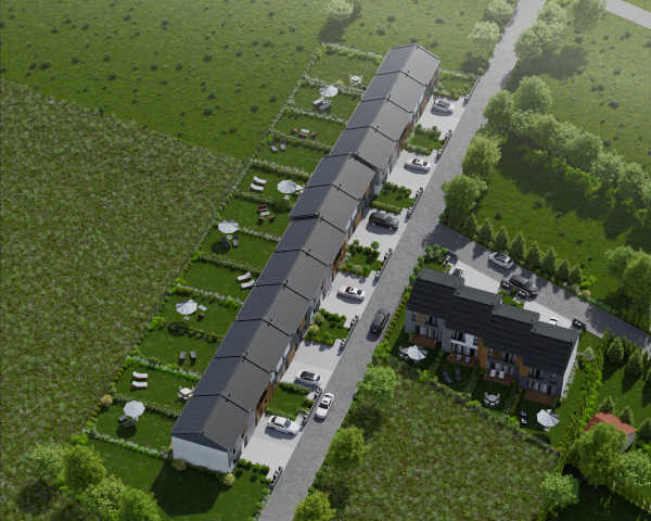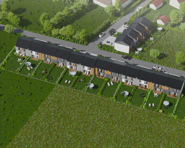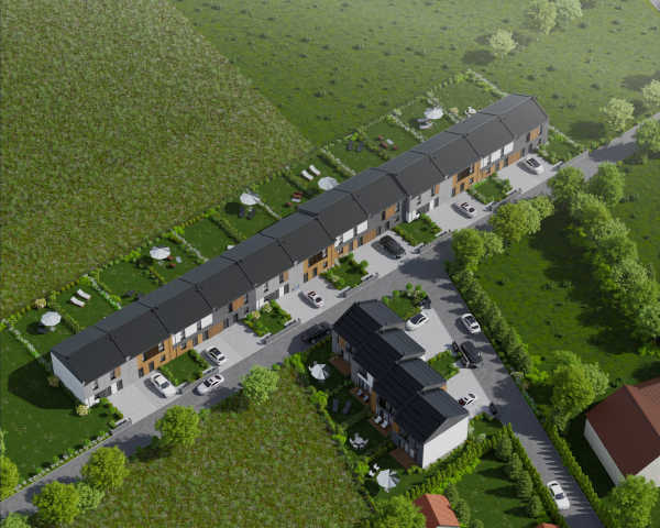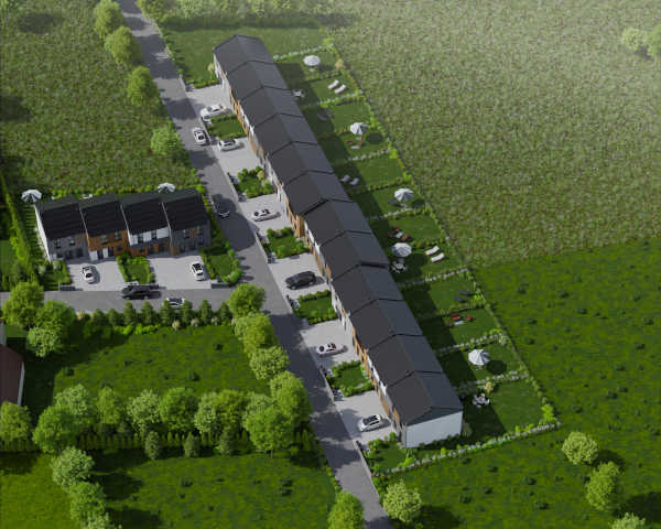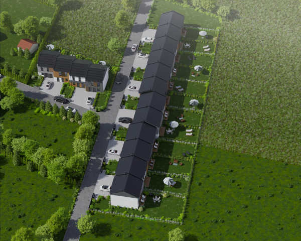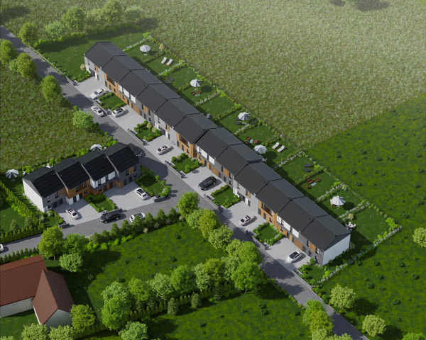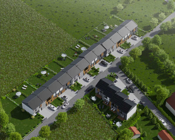 Ponadto do każdego domu przynależy prywatny, słoneczny ogródek – idealny do relaksu na świeżym powietrzu. Samochody można parkować pod wiatą garażową i na dodatkowym miejscu postojowym. Budynki zostały wykonane ze sprawdzonych materiałów w wysokim standardzie oraz przy wykorzystaniu energooszczędnych technologii. Cechuje je nowoczesna architektura, wykorzystująca w wyjątkowy sposób prostą, ponadczasową formę w eleganckiej kolorystyce.